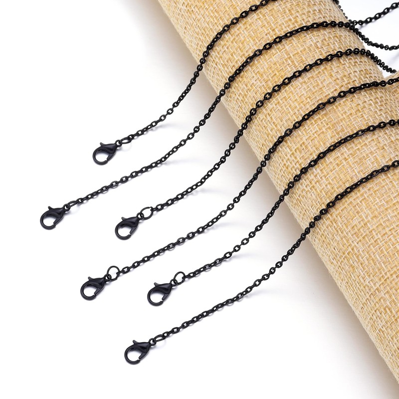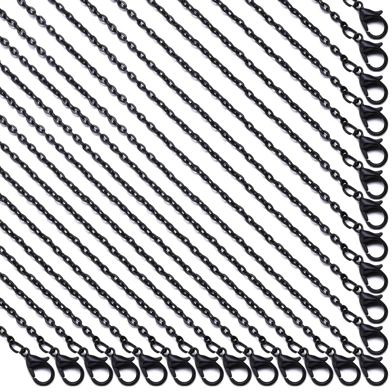 Forise24Pack de cadenas de collar a granel minimalistas de 2 mm de aleación chapada en negro para hacer joyas de bricolaje, 20 pulgadas