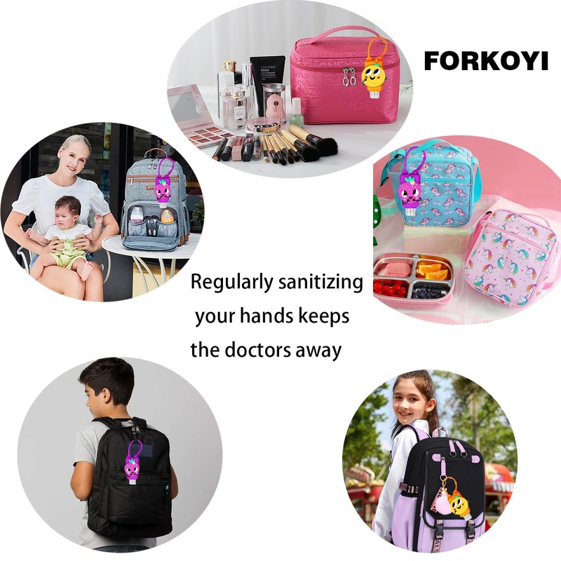 Forkoyi Cute Silicone Hand Sanitizer Holders for Backpack, 8 Designs, 2.5 x 2...
