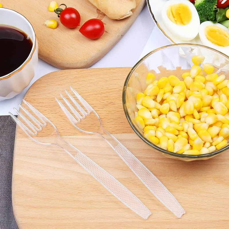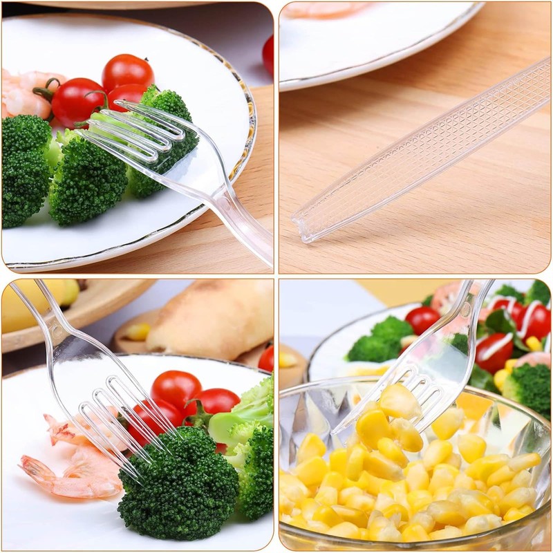Made of BPA-Free Clear Plastic, healthy and safety, harmless to family and friendsAdds sparkle and richness to any party, event or dinner with its crystal clear color and beautiful design pattern.Sturdy and durable plastic forks has a good flexibility, so it is not easy to broken. It can be used to eat cakes, fruits, desserts, meals, Made of BPA-Free Clear Plastic, healthy and safety, harmless to family and friends