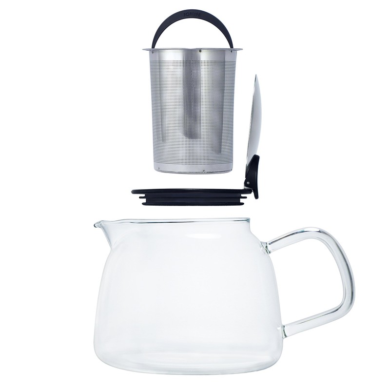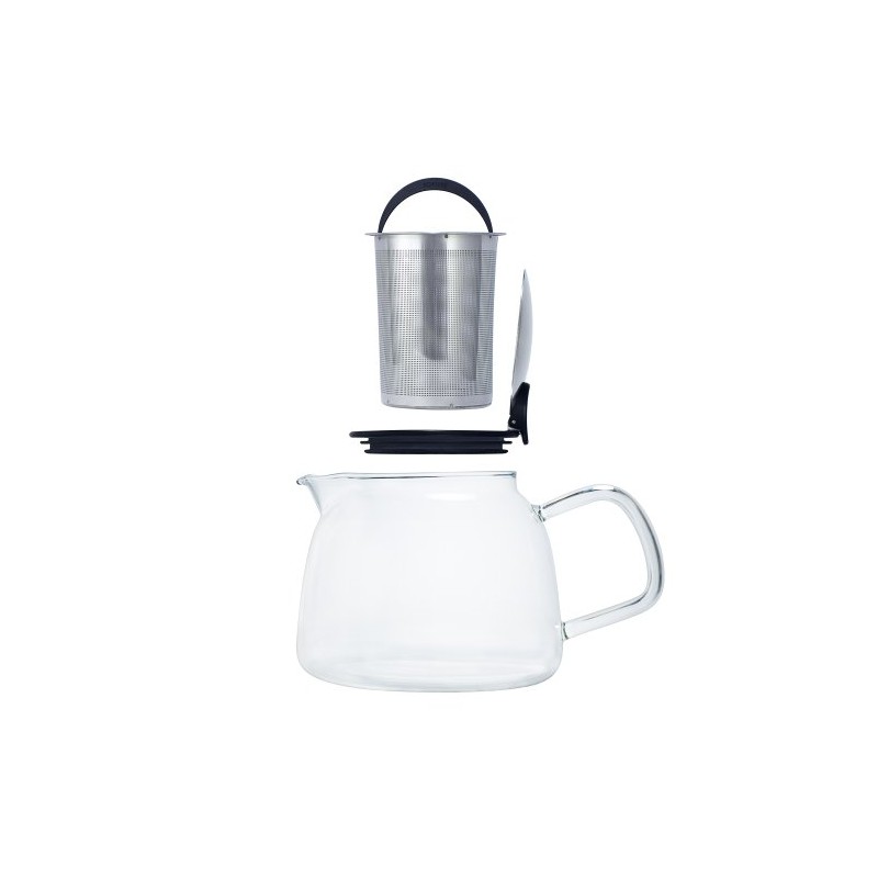 The stylish bell-shaped glass teapot, complete with the basket infuser with handle and the "push-on-lid", allows you to remove the infuser at the optimal time. an enchanting dance of aroma and color will unfold before your eyes. cleaning is hassle free with the detachable lid.