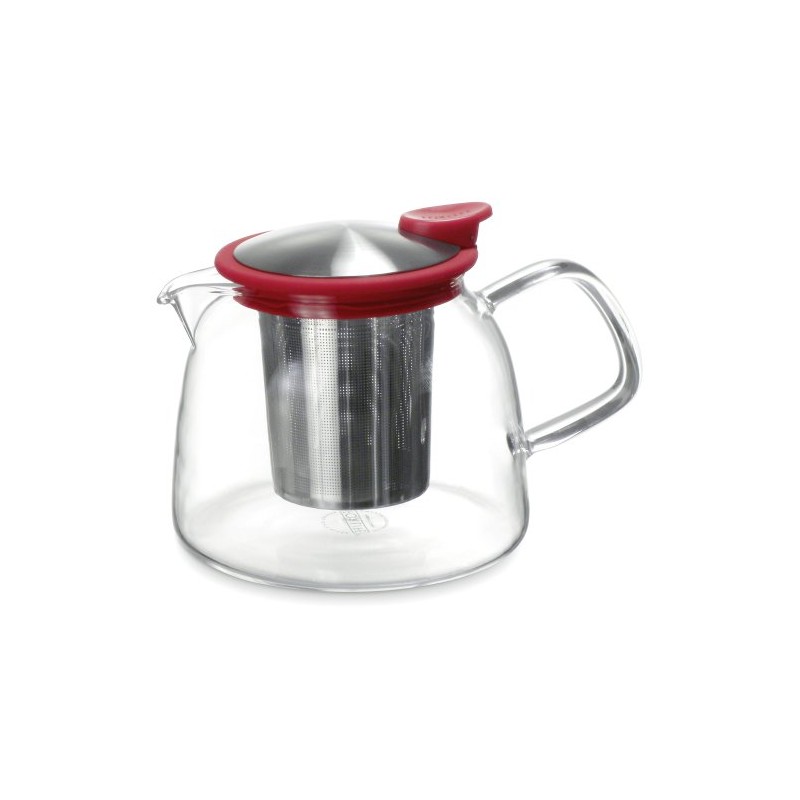 Forlife Bell Glass Teapot with Basket Infuser, 24-Ounce/730ml, Red