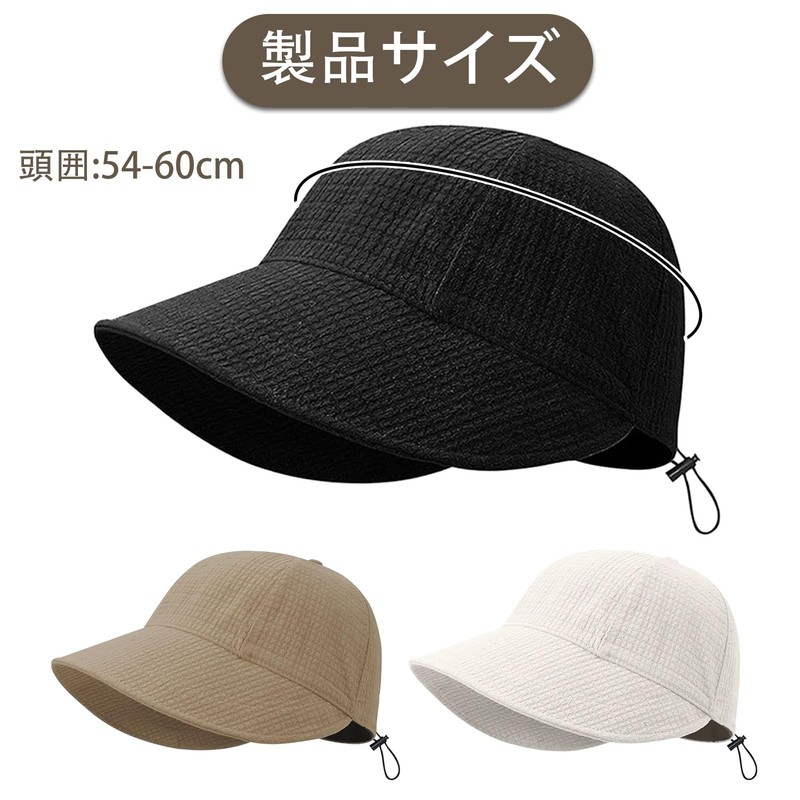 • 【おしゃれ・V顔効果】ファッションと実用を兼ね備えた日除け帽子は、みんなの理想的な選択です。帽子の型を最適化して、後付けのドローコードは調節が可能で(54-60cm)、それぞれの頭回りに完璧にフィットします。立体裁断のつばが顔を自然に整え、顔のラインを引き伸ばしてくれます。丸顔でV顔効果も期待できます!