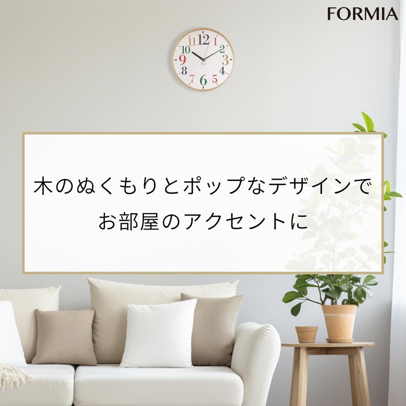Formia HIC-004 Interior Wall Clock, Wall Clock, Design, Silent, Continuous Second Hand, Wooden, Analog, Hodogaya Electronics Sales, Natural, Wall Hanging Hook, Stapler Set