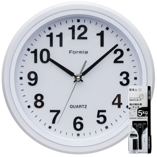 Formia HWC-010W-WH Wall Clock, Easy to Read Simple, Continuous Second Hand, Analog, Hodogaya Electronics Sales, White, Wall Hanging Hook, Stapler, Set