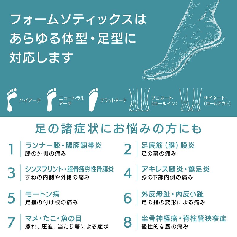 - [Transform into your feet] Due to the body temperature, weight, and bending pressure, it is thermoformed to fit your feet in about 2 weeks. In addition, by reheating with a dryer, you can heat mold it over and over again. The exact fit of your foot also supports blisters, arch support, heel cups, and knee strain