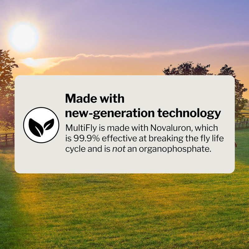 - EFFECTIVE - Contains active ingredient Novaluron, which is an Insect Growth Regulator. This new generation technology is 99.9% effective at breaking the fly life cycle to help eliminate the fly population in your barn.