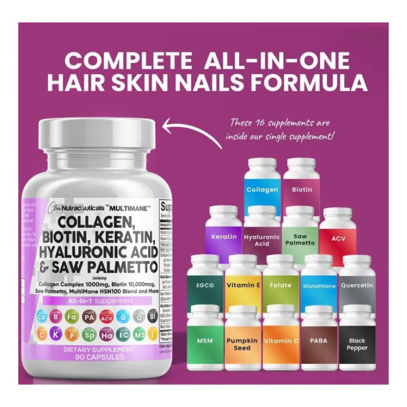 Con 90 cápsulas de ingredientes premium que fortalecen tu piel, cabello, uñas y salud general. ¡Luce y siéntete joven desde adentro! ✨🧬