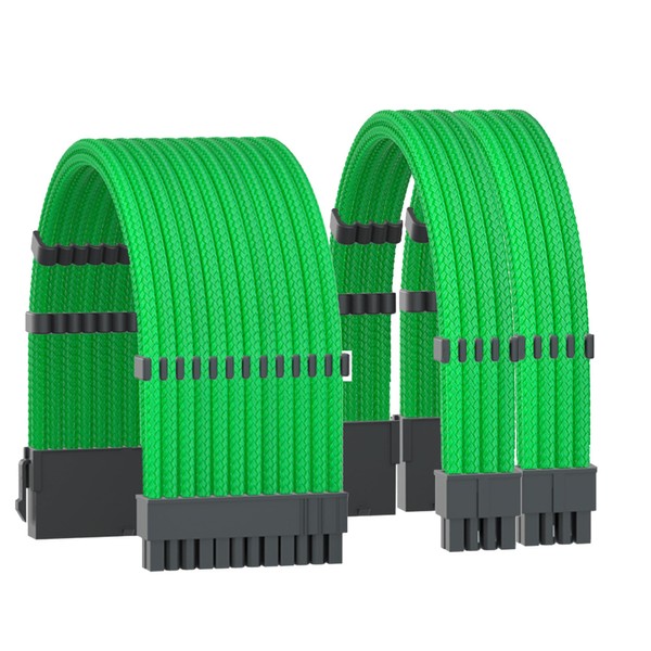 Formulamod Power Supply PSU Cable Extension Kit,18AWG Sleeved 1x 24pin ATX/2x 8(4+4) pin EPS Cable Extension PC,11.8inch with Cable Combs(Green,WTP)