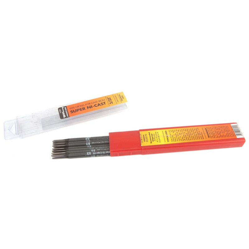The Forney 45300 Super Ni-Cast 99-percent nickel special welding electrodes feature a non-conductive coating that is ideally suited for welding all grades of gray cast iron particularly thin sections and welds requiring the highest possible machinability. Typical applications include automotive engine blocks, transmission and pump housings. Forney Industries is one of America's longest operating family-owned metal working product companies. Founded in 1932, Forney offers more than 5,000 products for the hardware, automotive, farm and ranch and do-it-yourself markets. If you've got metal working questions, we've got answers. We're committed to your success regardless of location size or needs. 3/32 inch (2.38 mm) rod diameter. 1/2 pound (.23 Kg) box of rod. Tensile strength is 55,000 PSI. Recommended polarity: DC reverse. Amperage: 70-90 amps. Hardness: BHN 155. Claims for warranty must be made within 90 days of the date of purchase. Proof of purchase required. This warranty does not cover any product that has been subject to misuse, neglect, negligence or accident, or that has been used in any way contrary to the purpose intended.
