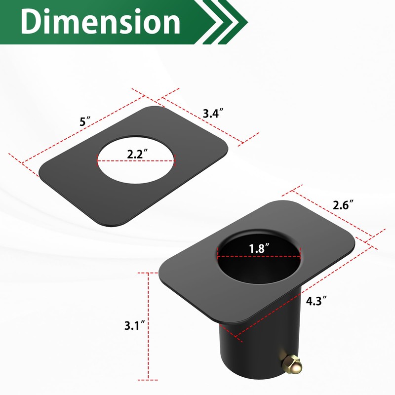 Dimension: The rain chain adapter for gutter size: 5” (L) x 3.5” (W) x 3.1” (H). Top opening 2 inch, Bottom opening 1.75 inch. Compatible with many diameters downspout hole to use