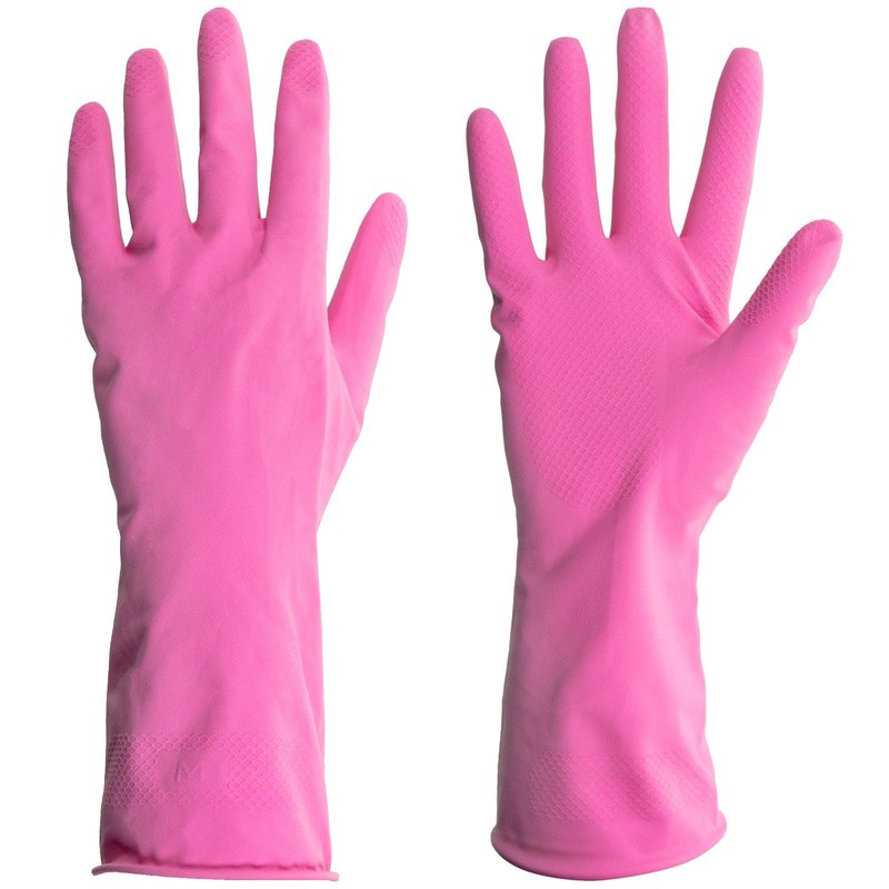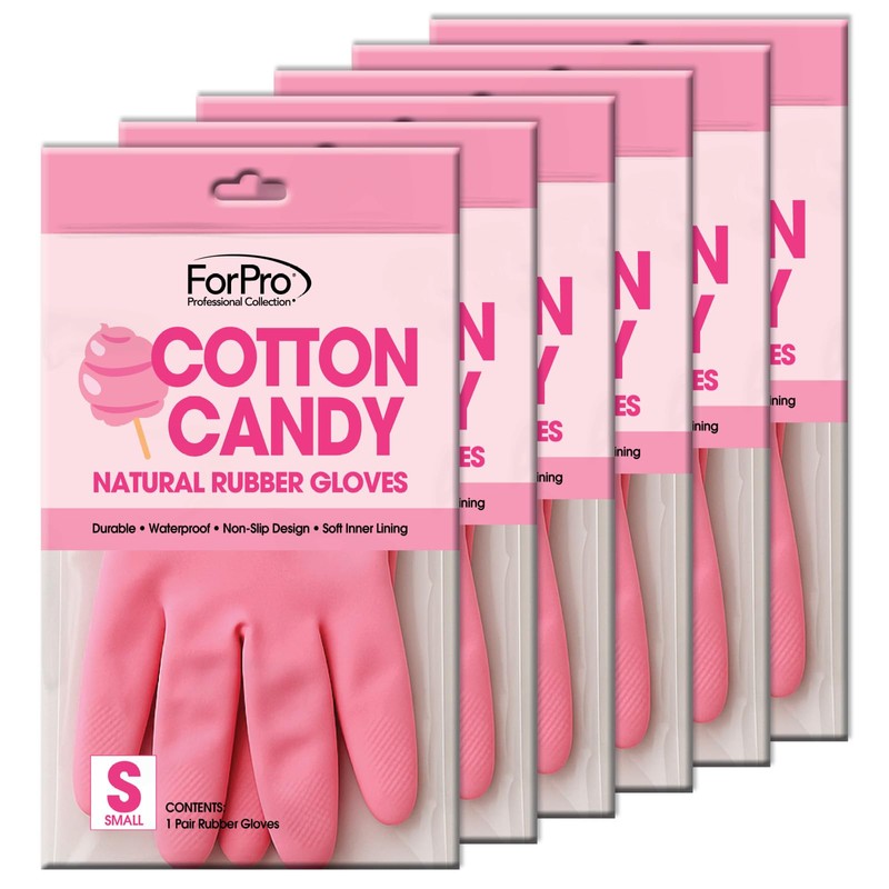 ForPro Natural Rubber Gloves, 6 Pairs Reusable Multi-Purpose Household Cleaning Gloves with Soft Inner Lining, Waterproof & Chemical-Resistant, Cotton Candy, Small