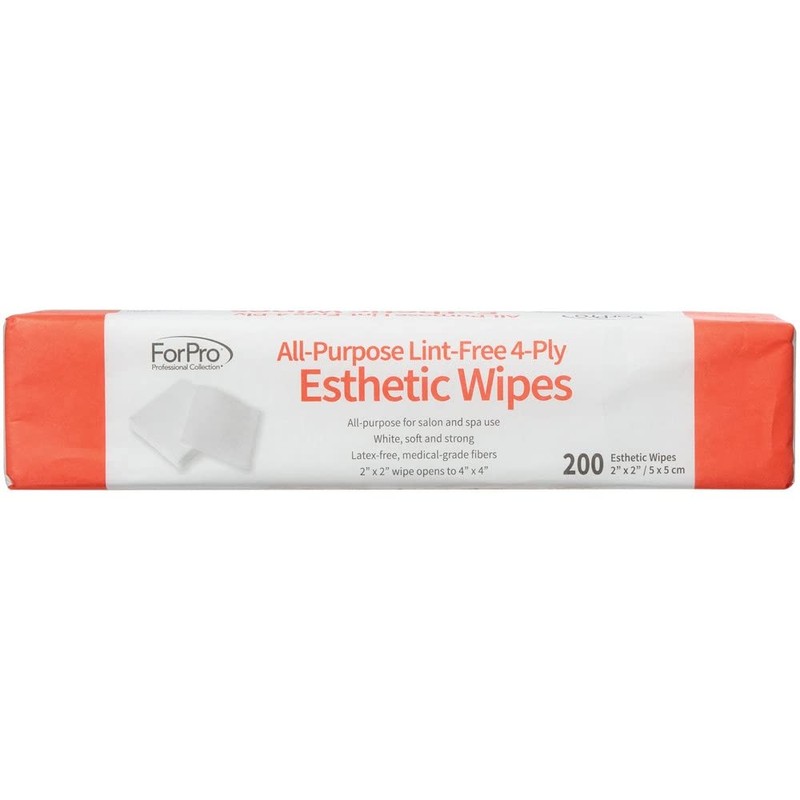 ForPro All-Purpose Lint-Free 4-Ply Esthetic Wipes are made from high quality cotton fibers and are lint and latex-free. They are designed for applying products to the skin and can be used to apply gels, creams, lotions, toners, waxes, and masks, making the application process an effective, easy, and comfortable experience. The soft, strong, and durable esthetic wipes are also ideal for dressing and cleaning minor wounds and cleansing skin before facial treatment Esthetic wipes are 2" x 2" and open to 4" x 4". Facial wipes can be used with any liquid, creme, gel, or mask. Non-woven, 4-ply, 200-count, 6-pack.