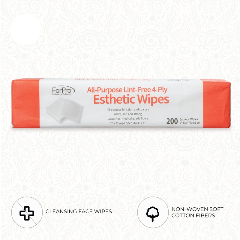 ForPro Professional Collection All-Purpose Lint-Free 4-Ply Esthetic Wipes, for Salon and Spa Use, Soft, Strong and Durable, Latex-Free, 2" x 2", 200-Count