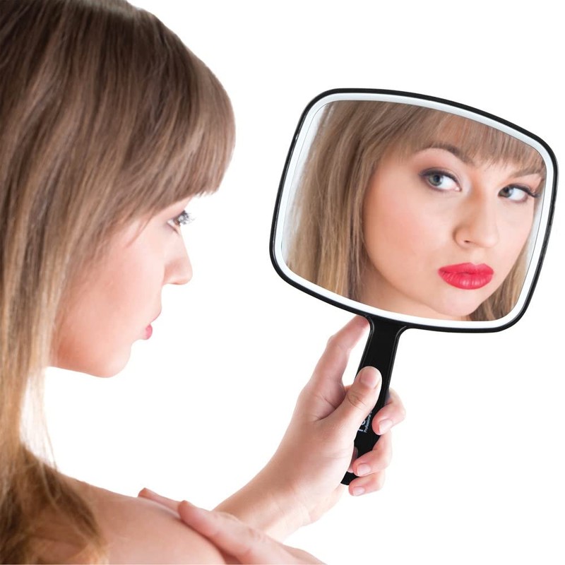 - Handheld Mirror: Features a long, comfortable grip handle and large square face.