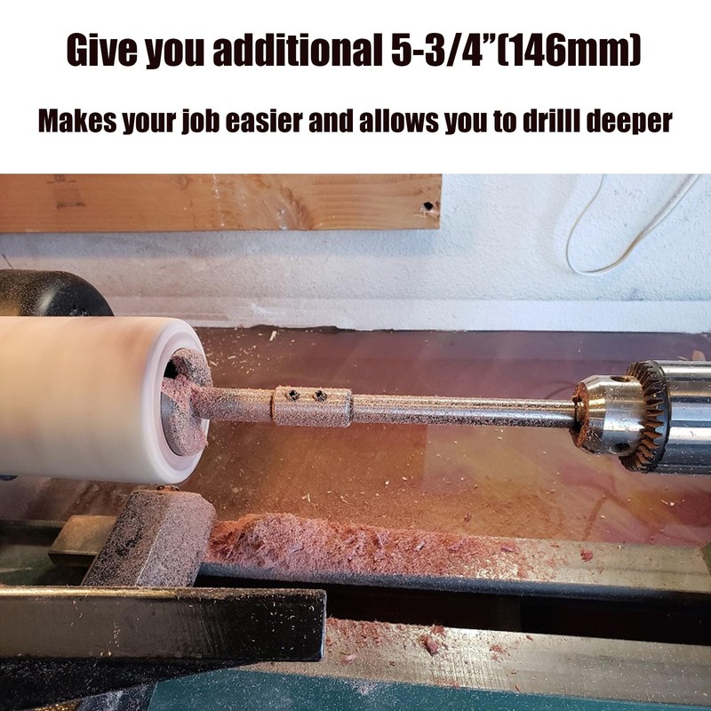 • 【Increase Drilling Depth】The forstner bit extension gives you additional 5-3/4 inches of reach to bore deeper into your projects. This will help you create larger diameter starter holes or help when you need to drill in just a little further than the standard bit length will allow. The extension can be used with forstner bits on drill presses, lathes with a drill chuck installed (drill chuck not included) or with a power drill.