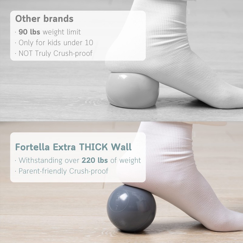 - Thicker & Parent-friendly Crushproof: Fortella uses more material to manufacture each of our pit balls, making the wall 50% thicker than normal market size to withstand over 220 pounds of weight. Feel safe to join your kids without the fear of crushing the balls.