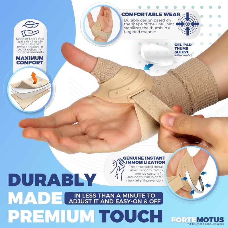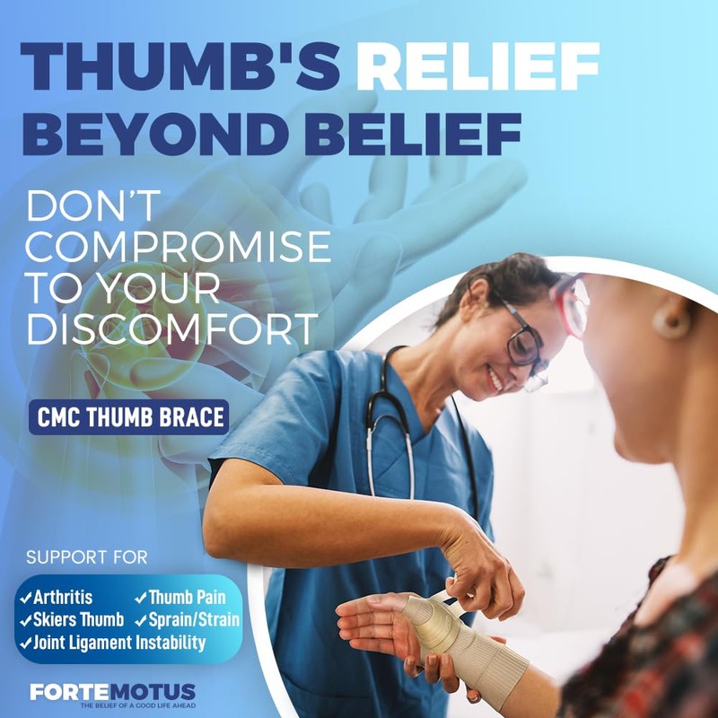 - 👍 Alleviate Thumb Discomfort with FORTEMOTUS — Our thumb brace offers a sanctuary for sore thumbs. Whether you're battling arthritis, ligament instability, tendonitis, or simple sprains, the FORTEMOTUS thumb brace is your ally. It braces your thumb, providing the stability needed for healing while offering enduring comfort.