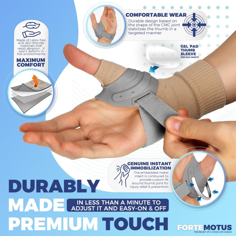 - 👍 Alleviate Thumb Discomfort with FORTEMOTUS — Our thumb brace offers a sanctuary for sore thumbs. Whether you're battling arthritis, ligament instability, tendonitis, or simple sprains, the FORTEMOTUS thumb brace is your ally. It braces your thumb, providing the stability needed for healing while offering enduring comfort.