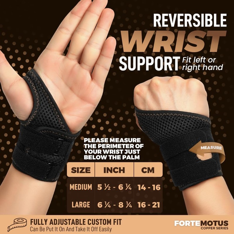 - All-Day Comfortable Wear - Crafted from premium copper material, the FORTEMOTUS pinky side wrist brace assures long-lasting comfort, being skin-friendly and non-irritating. Its inner surface showcases diamond patterns, while the lightweight, perforated fabric enhances breathability, moisture-wicking properties, and prevents slippage.