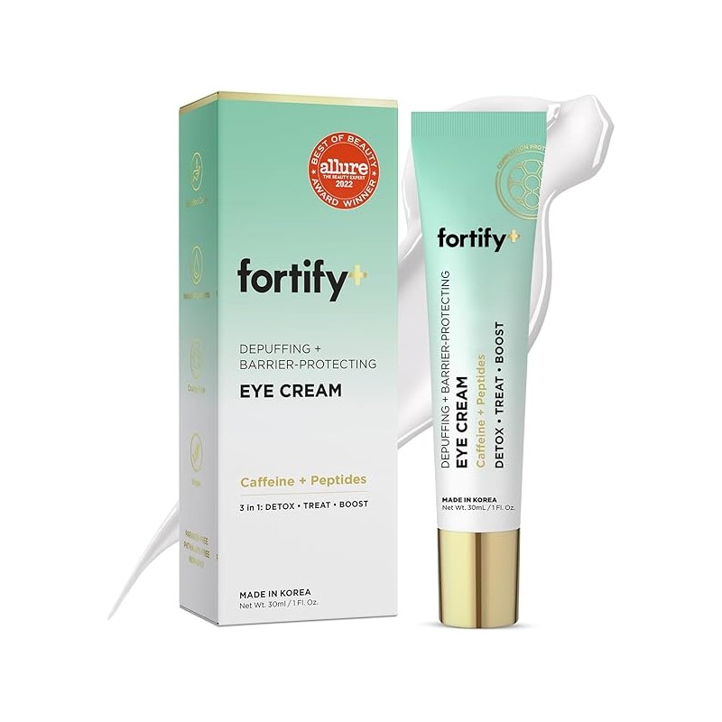 Fortify 9-in-1 Natural Skincare Eye Cream - De-Puffing & Protecting, Dermatologist Tested - Hydrates & Refreshes, Made in Korea - 30ML (1 Pack)