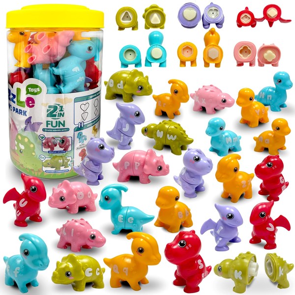 Fortivae ABC Dinosaur Alphabet Toys, Learning Toys for 3 4 5 6 Year Olds, Dinosaur Toys with Uppercase Lowercase, Matching Letter Educational Montessori Toys, Toddler Toys (26 Pcs)