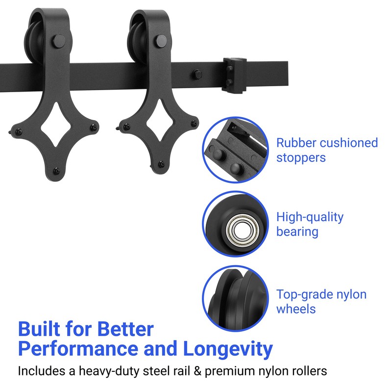 - Smooth And Effortless Operation: Premium wheels and sliding door rail bearings ensure seamless motion. The included rubber-cushioned stoppers provide soft stops, preventing noise and wear.