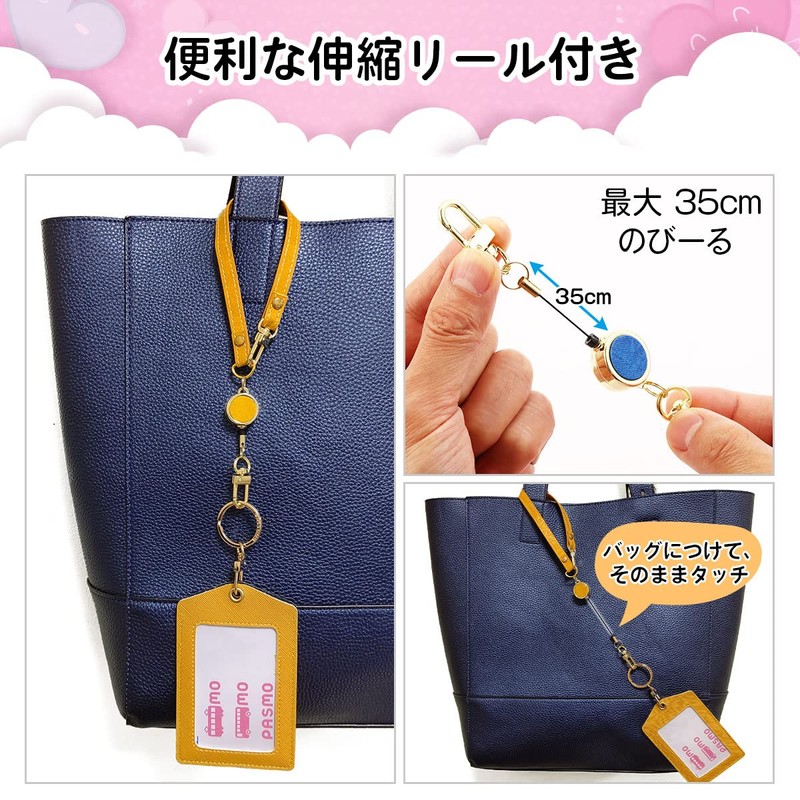 - (Includes a retractable reel) With a popular expandable reel (up to 13.8 inches (35 cm)), it is easy to insert and remove from your bag or pocket. You can use it easily while attaching it to the bag, and release your hand to return it automatically, so you can smoothly pass through the gate