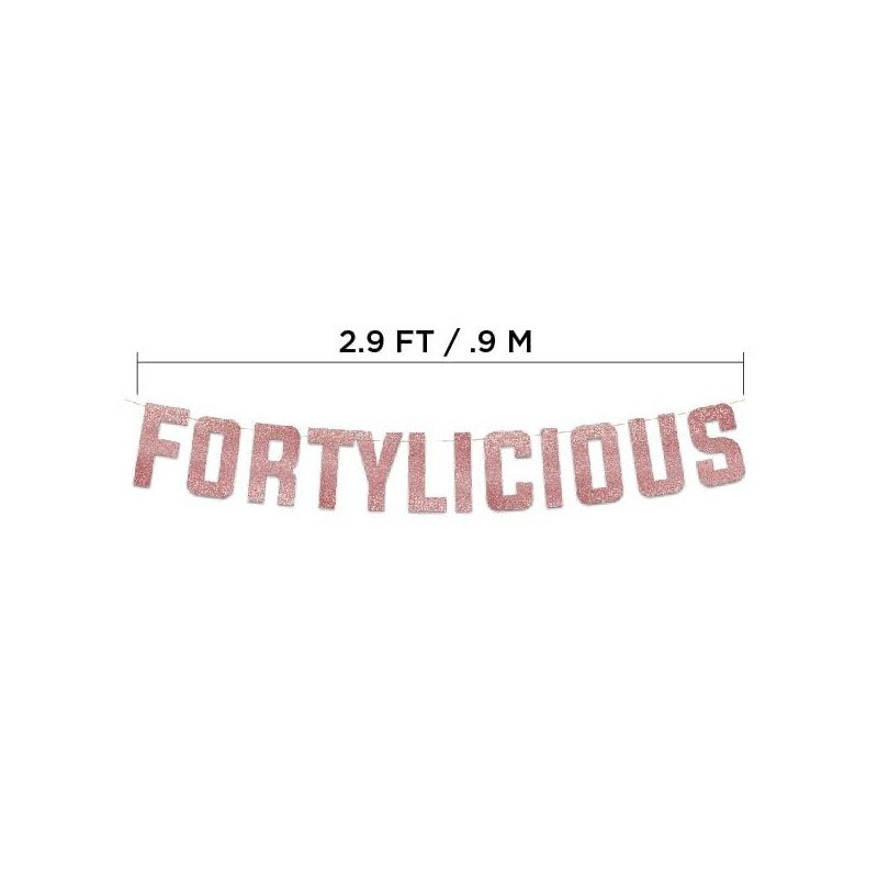 Fortylicious Rose Gold Glitter Banner - Happy 40th Birthday Party Banner - 40th Wedding Anniversary Decorations - Milestone Birthday Party Decorations