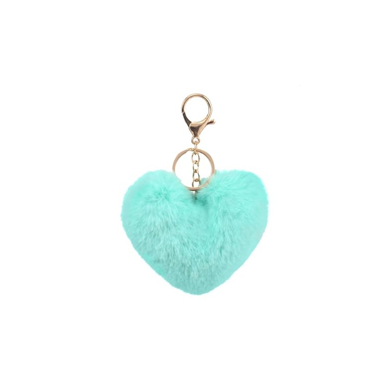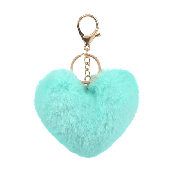 FORUBUS Heart Shaped Leopard Pom Pom Ball Keychain - Fun Accessory for Stylish Women (Green blue)
