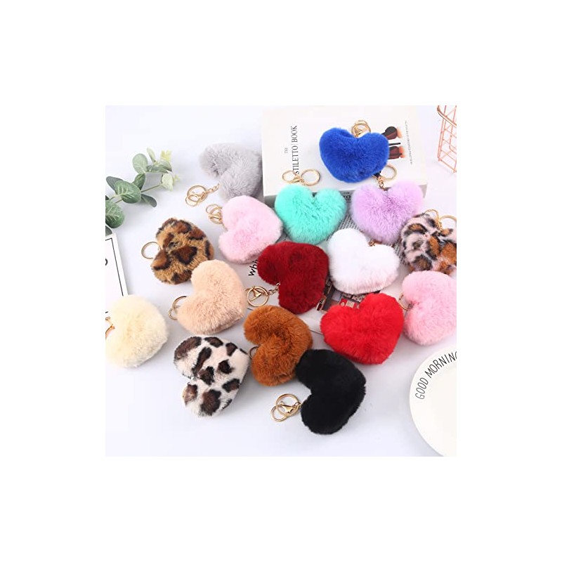 - Playful Elegance: Elevate your style with a heart-shaped leopard print pom pom ball keychain, showcasing your fashionable and fun side.