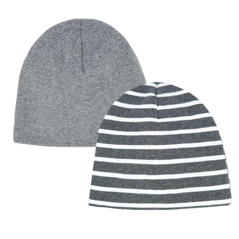 FORUHOO Baby Beanie for Boys Girls Toddler Hat Autumn Winter Set of 2, Two-layer: grey and grey stripes