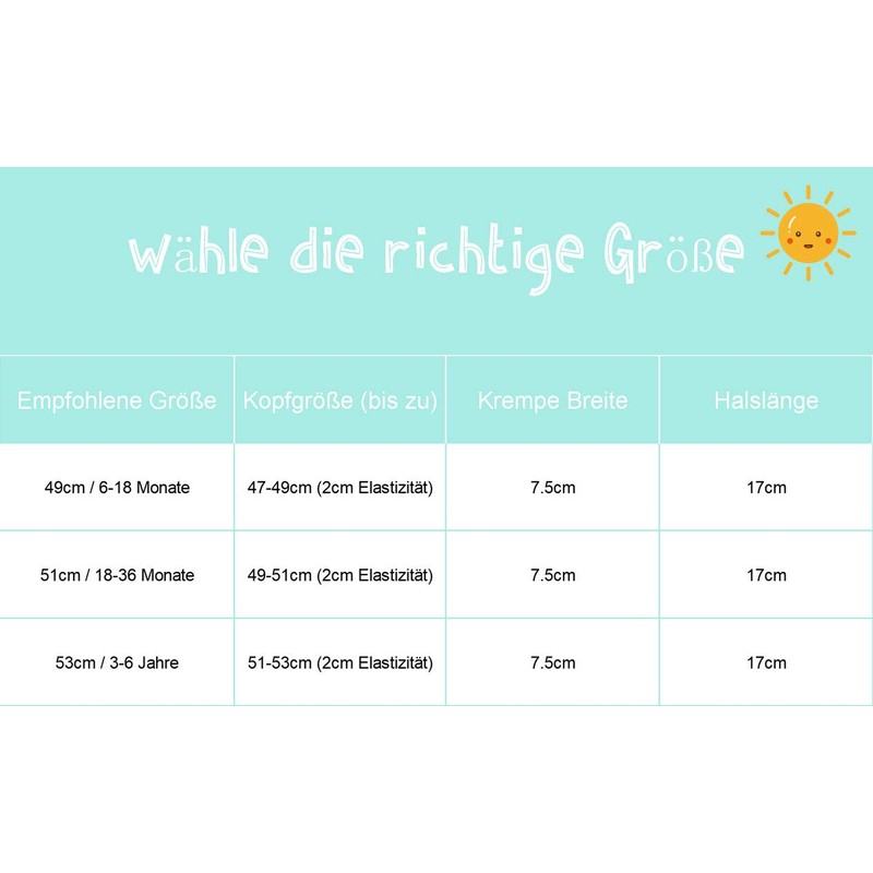 The intimate adjustable chin strap secures the hat to the head so that it is not blown away by the wind and the baby is no longer afraid to lose the hat during play.