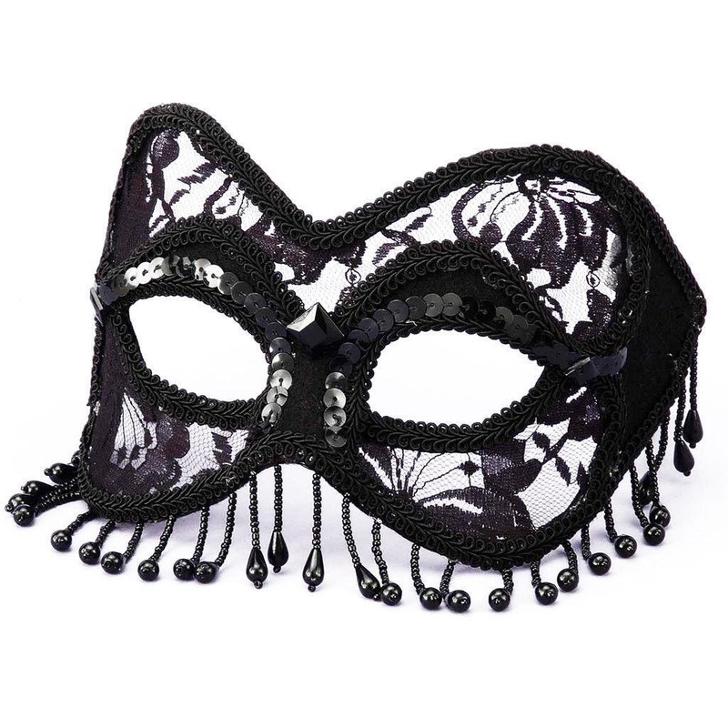 Venetian Black Lace Mask with Sequins and Beads. Attached Headband for easy wear. Great for a Masquerade.| Brand: | FORUM |