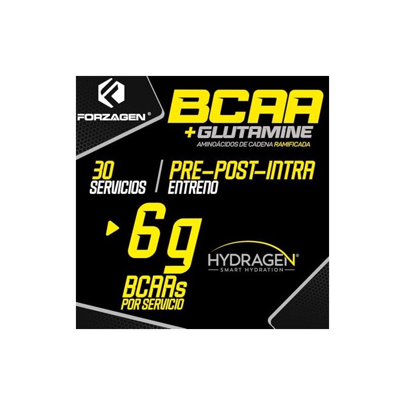 🌟 ⭐ Forzagen | Aminoácidos BCAA + Glutamine | 8 g de BCAA 2:1:1 | 2 g de L-Glutamina | 30 Servicios | Sabor Durazno | Post-Intra Entrenamiento | Con Complejo de Hidratación Hydragen® | 330 g ⭐ 🌟