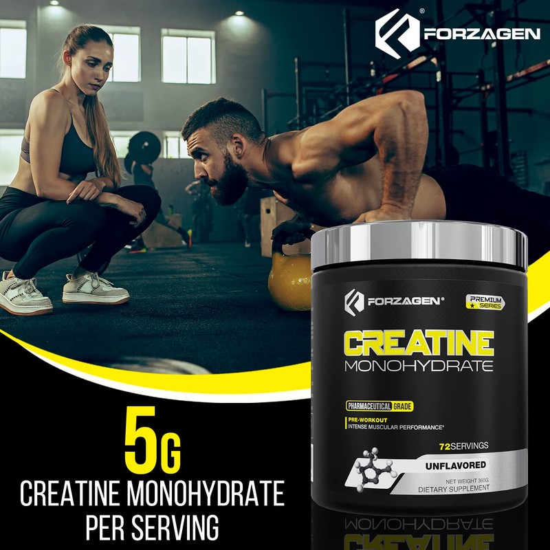Forzagen Creatine Monohydrate Unflavored - ·The quintessential supplement that can not be missing in your fitness plan. Ideal to increase the energy reserves of ATP at the muscular level, for all those who seek to train with greater strength and intensity.!! · High Grade Purity Each intake of Forzagen Creatine Monohydrate offers a purity of 99.9%, which means that 5 g of product actually provides you with 5 g of this supplement!! · MUSCLE DEVELOPMENT Excellent supplement to promote post-workout muscle development!! FORZAGEN 100% PHARMACEUTICAL GRADE Creatine Monohydrate is one of the most effective dietary supplements for gaining size and muscle strength. Creatine Monohydrate works by increasing water retention in the muscle cell. Increased water in the cell may help minimize protein breakdown, improve recovery and further enhance growth. Over 95% of Creatine is stored in skeletal muscle tissue. By supplementing Creatine Monohydrate, we are able to increase the body’s store of creatine in the muscle tissue. The more Creatine in the muscle cells, the more EXPLOSIVE energy is available for the muscles to contract HARDER for a longer period of time.