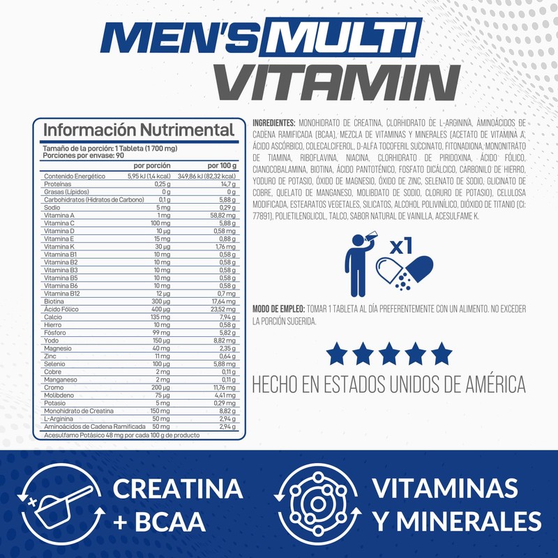 - Fórmula de vitaminas y minerales especialmente diseñada para hombres, balanceada para sus necesidades nutrimentales diarias