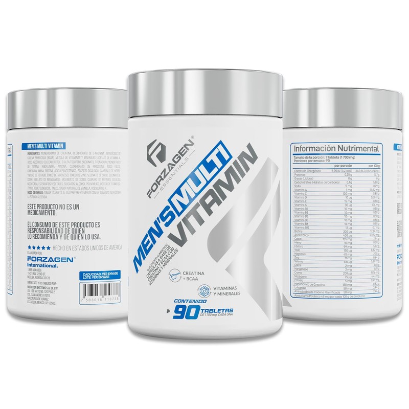 Forzagen | Suplemento Alimenticio Men's Multivitamin | Multivitamínico para Hombre | 60 Servicios | Con Complejo para Energía y Rendimiento - Creatina + BCAA + L-Arginina | Salud Integral | (90 Caps)