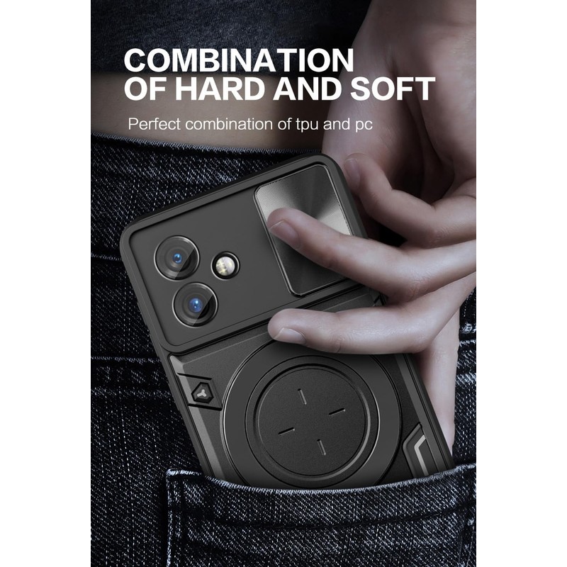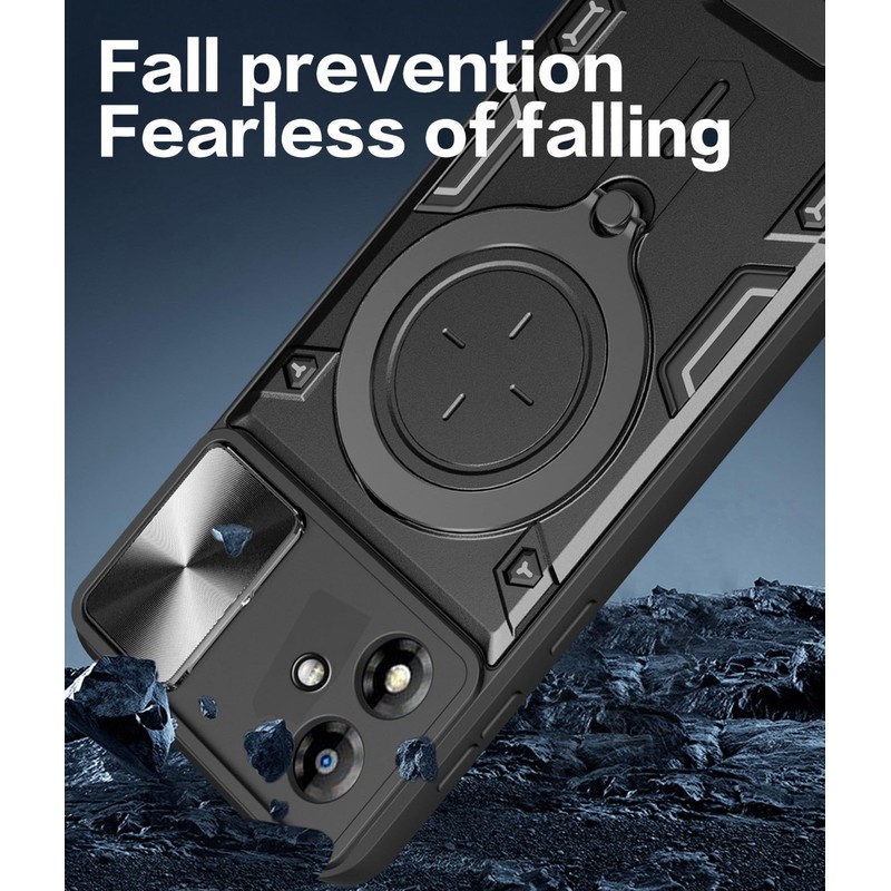 FORZARMOR for Oppo A60 5G/ A40 (6.67 Inch) Case Shockproof with Back Camera Slide Window Cover, Ring Kickstand Armor Military Rugged Cover (for A60 5G/A40 4G, Black)