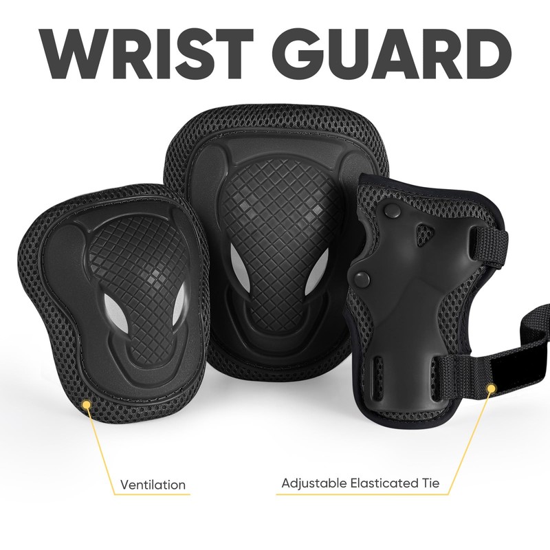 Forzueby Youth/Kids Protective Gear Sets Adjustable Knee Pads and Elbow Pads Wrist Guards for kids Skateboard Roller Skates Scooter Inline Skating Cycling BMX. (Black, M)