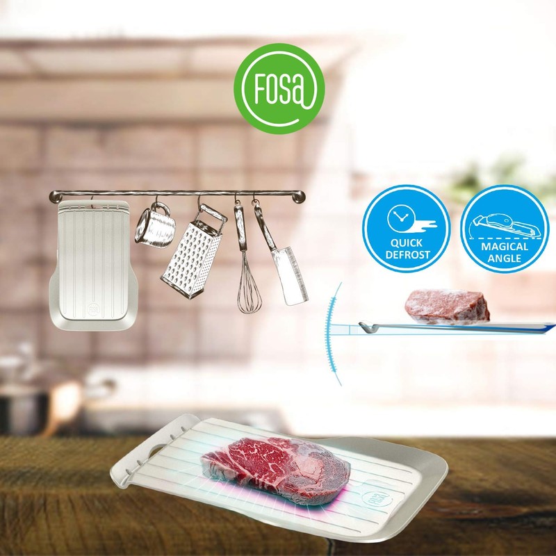 FOSA Fast Defrosting Tray, Small Size, Alloy Aluminum with Elevated Edge and Drip Tray, Silver, 10.3 by 6.9 inch Size