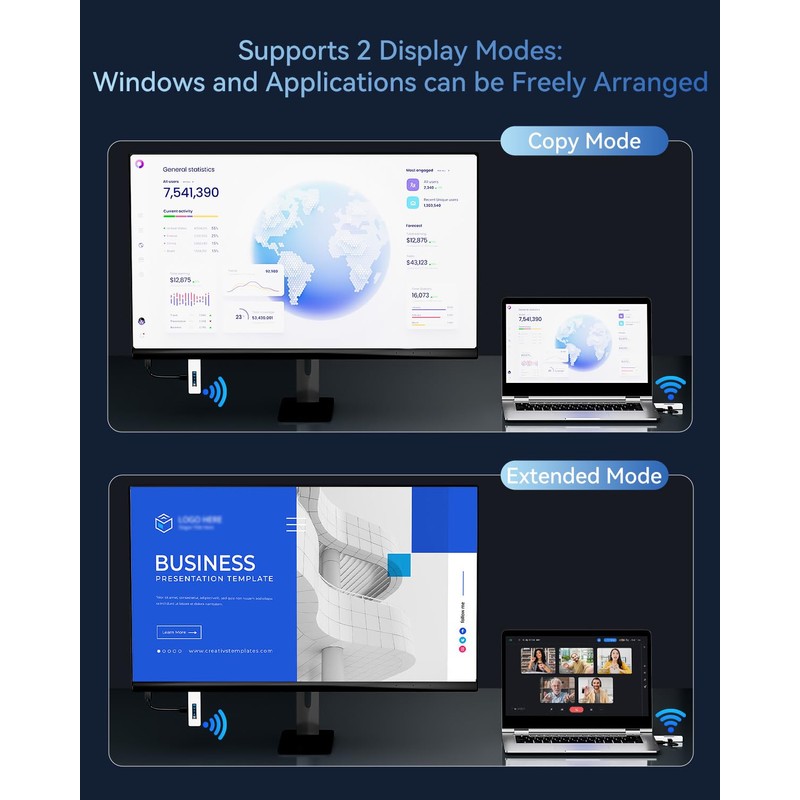 - 【Duplicate Mode & Extended Mode】: Choose between mirroring or extending your screen to adapt to your needs. Great for business meetings, teaching, churches, live broadcasts, business presentations home theater, parties, outdoor movie screenings, and more to use