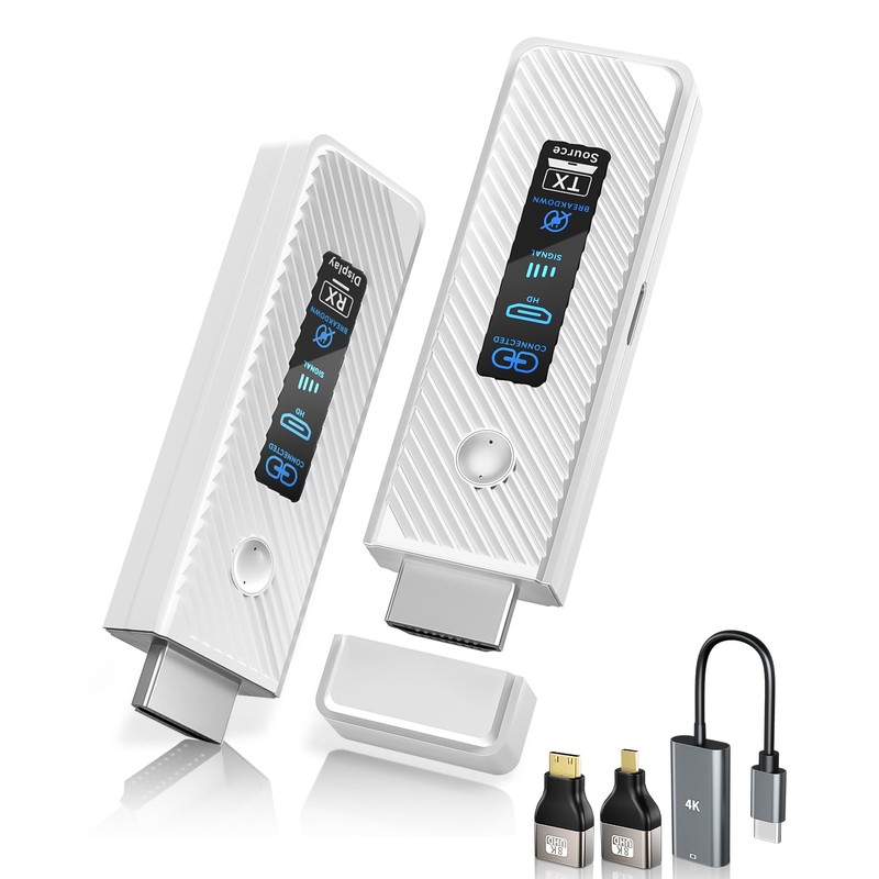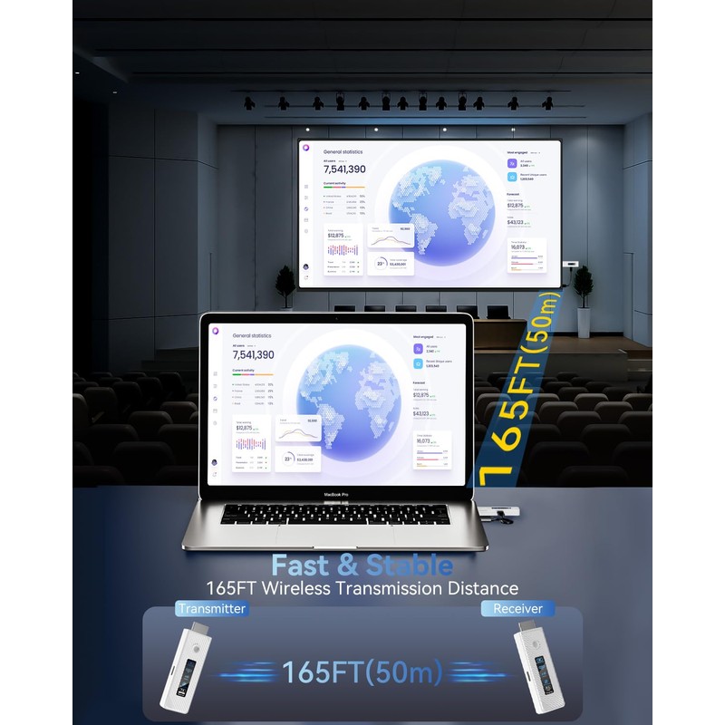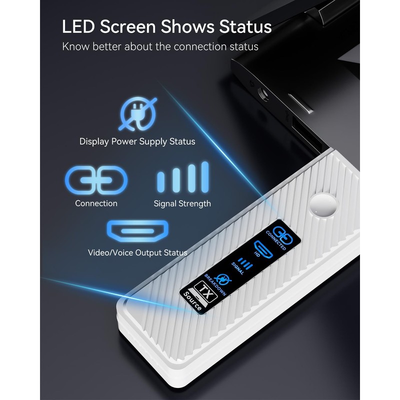 - 【LED Display & Travel-Friendly】With LED digital display, you can know the connection status & signal strength in real time. Easier to solve connection issues. Wireless HDMI sender extender in a compact and lightweight design. Perfect for business trips, business meeting presentations, vacations or family gatherings