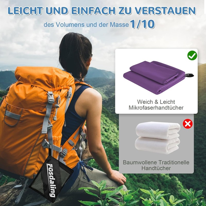 - Multi-functional hand towel: large towel 180 x 90 cm and 2 small towels 80 x 40 cm, including accessories: a portable storage bag. Microfibre towels suitable for a variety of occasions such as travel, outdoor activities, camping, gym, gym, swimming, sauna, sports, fitness and yoga.
