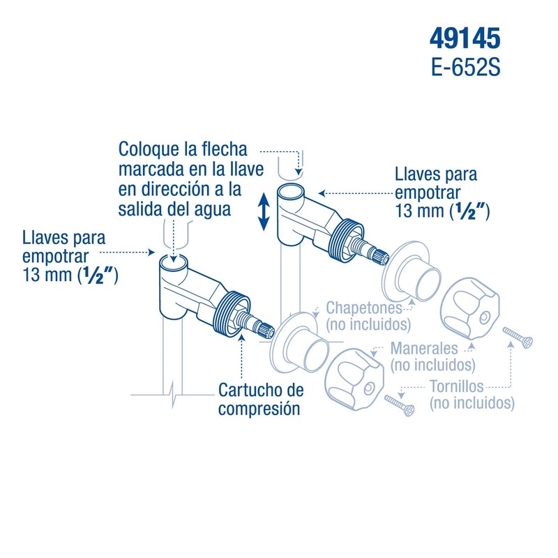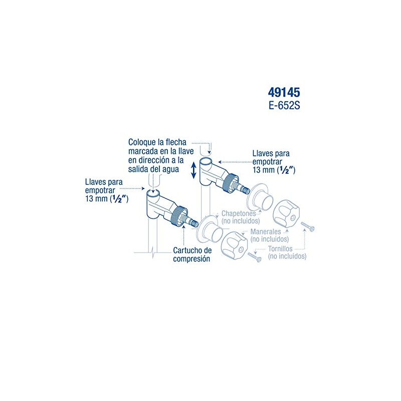 Foset E-652S, Juego 2 llaves de latón para empotrar soldables, Aqua