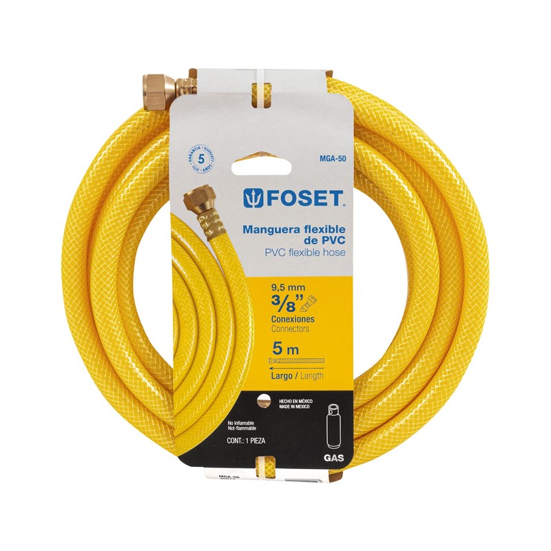 Foset MGA-50, Manguera flexible, PVC, 3/8" con conexión, 5 m