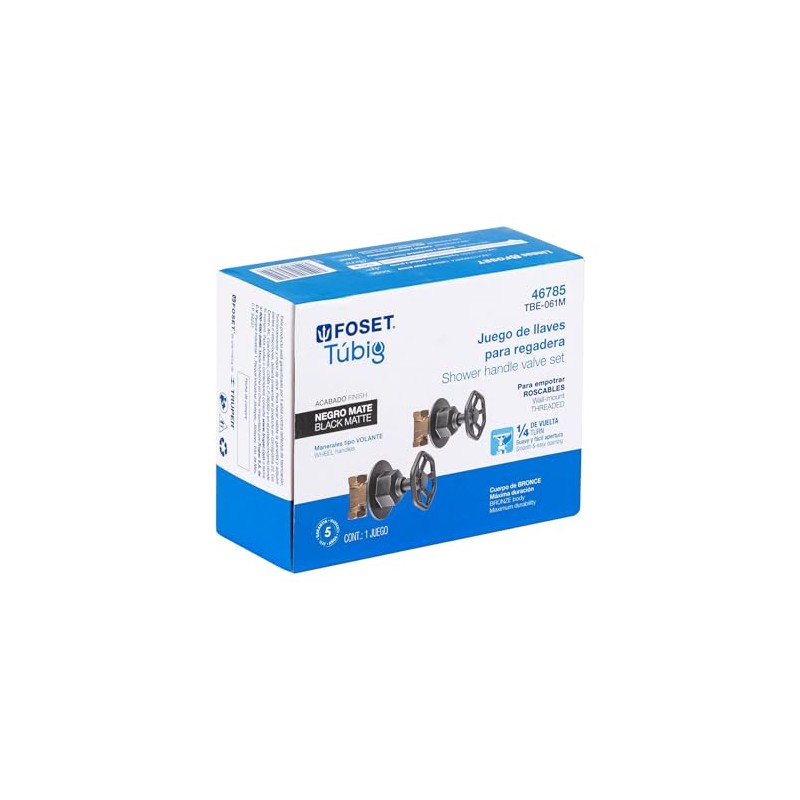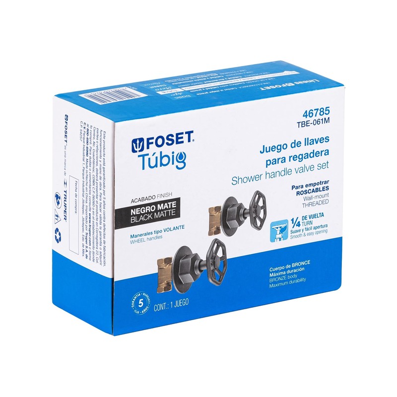 Foset Tubig TBE-061M, Juego manerales redondos roscables para regadera color negro línea Tubig