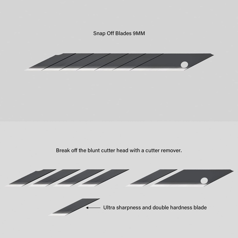 - Sharp and Stable Blades: Sharp blades and you can get replacement 10pcs 30 degree blades. Each blade for this knife can be snapped 6 times for a total of 7 blades that are extremely sharp.