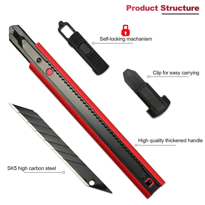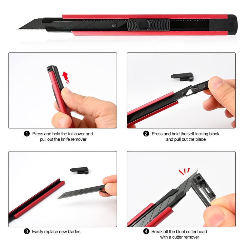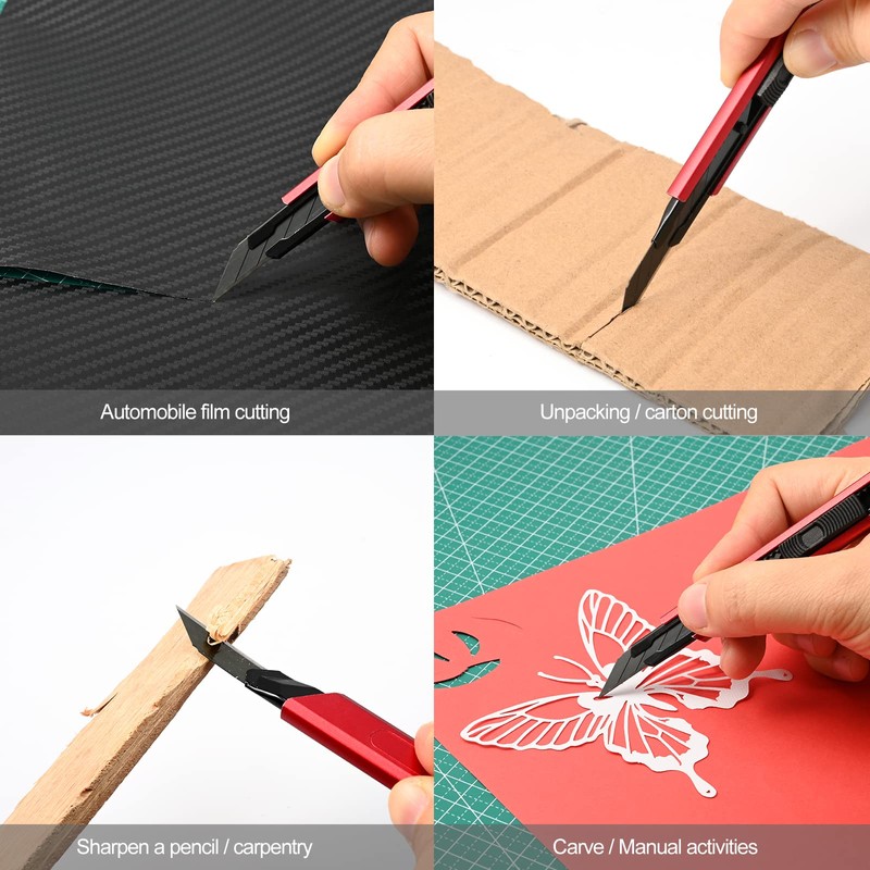 • High-Grade Carbon Steel Blade: Aluminum handle utility knife is lightweight and comfortable to hold. 9mm wide blade provides stronger hardness, is not easy to break, and has good stability.