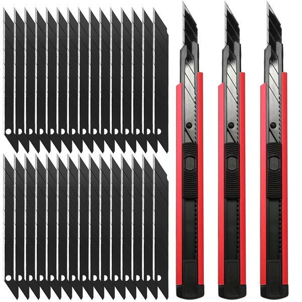 • Package Contains: Includes 3 sets of utility knives retractable with an additional 30pcs replacement 30 degree blades.