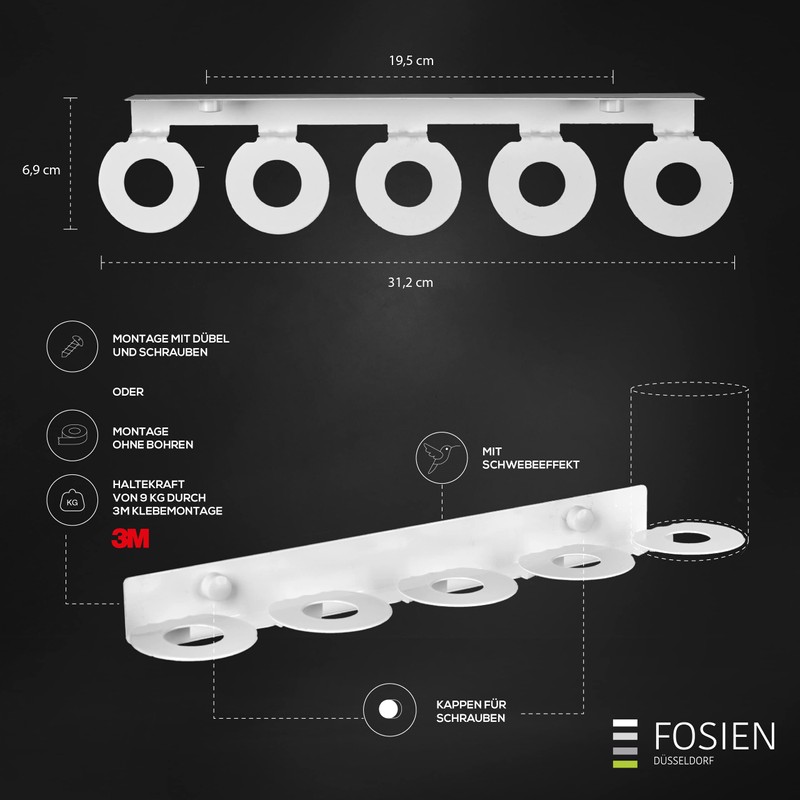 - Robust reinforcements ensure that the angles are always 90° and the floating effect of the just spices shelf is always retained, 5 Just Spice spice jars fit exactly on the 5 floating plates.